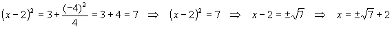 Now, b = -4, b/2 = -2 and k = 3, so plugging this into the formula gives