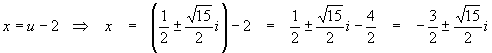 This solution is interesting in that the two solutions are complex conjugates.