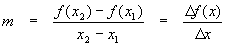 then it becomes a bit clearer that we are actually dividing an increment in the function value by an increment in the variable. As it stands now, this number is the same everywhere for a straight line because the ratio of the rise to the run is always constant. For a more general function, the value m above depends in general on both x1 and x2; different choices of these two numbers will give different values of m.