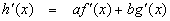 Properties of Derivatives Linearity · Linear Combination Rule · Example using Linear Combination Rule · The Product Rule · Definition of Product Rule · Example using Product Rule · The Quotient Rule · Definition of the Quotient Rule · Example using Quotient Rule · Definition of the Chain Rule (function of a function version) · Definition of the Chain Rule (composition version) · Example of the Chain Rule · Recommended Books This article covers laws that allow us to build up derivatives of complicated functions from simpler ones. These laws form part of the everyday tools of differential calculus. Linearity Suppose f(x) and g(x) are differentiable functions and a and b are real numbers. Then the function![]()